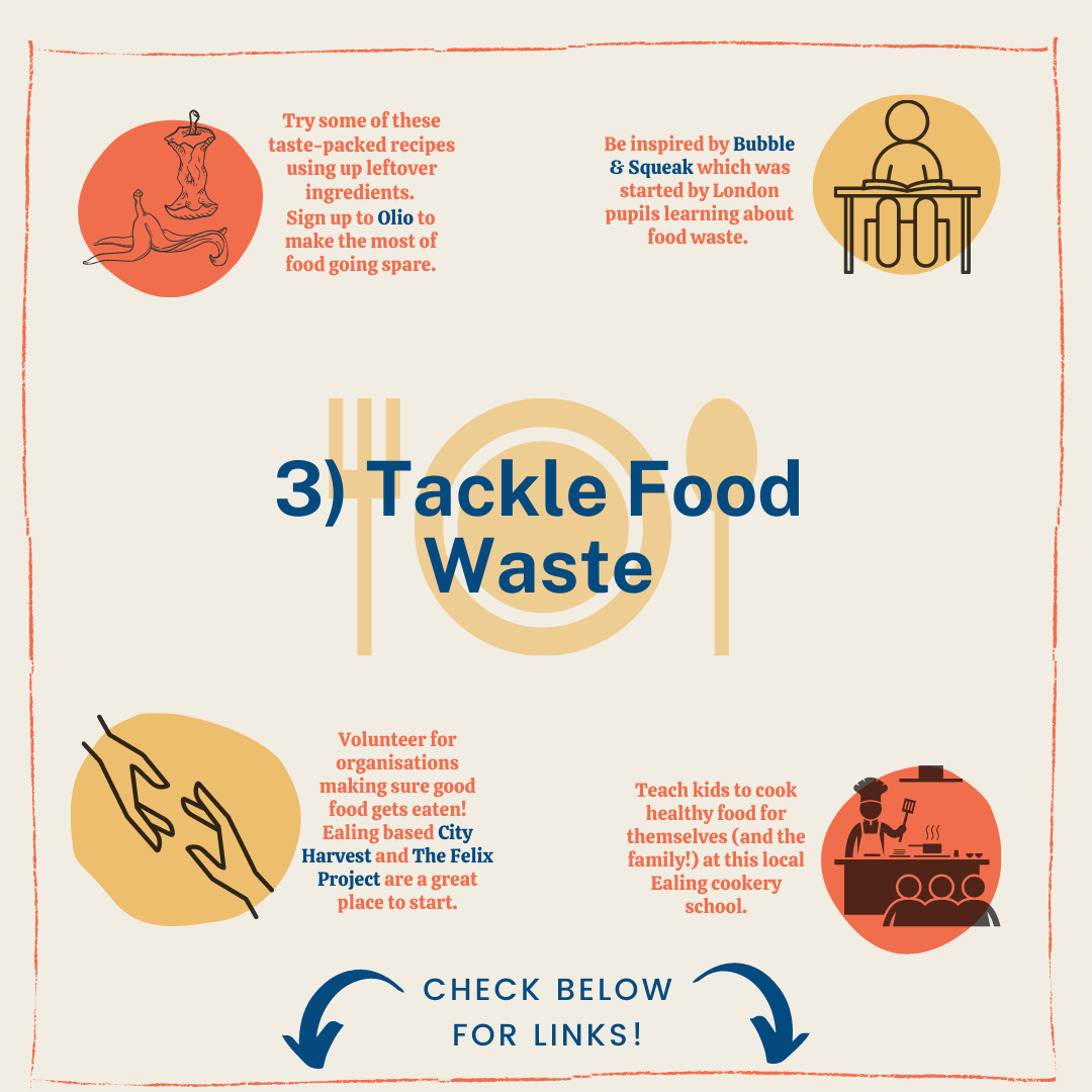 - Volunteer for organisations making sure good food gets eaten! Ealing based City Harvest and The Felix Project are a great place to start.